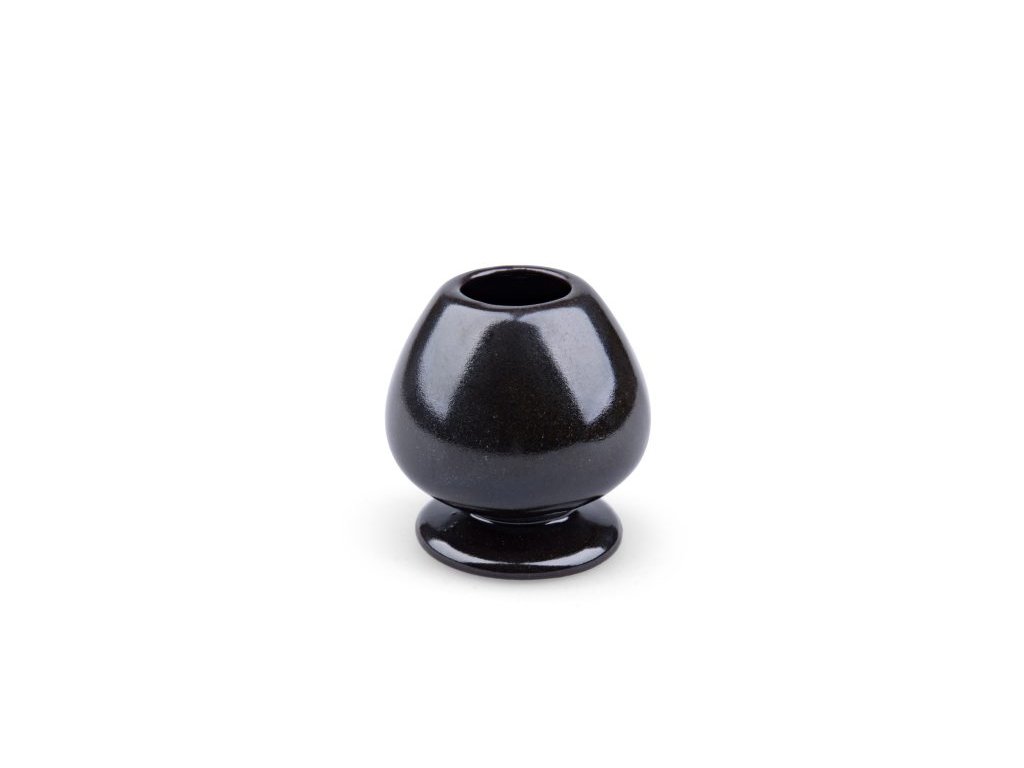 Keramický stojánek na bambusovou metličku (časen). Po každé přípravě matcha odložte metličku na stojánek — bambus vyschne ve správném tvaru a štětinky si zachovají pružnost. Prodlužuje životnost metličky. MOC 221 Kč. Praktický i dekorativní doplněk.